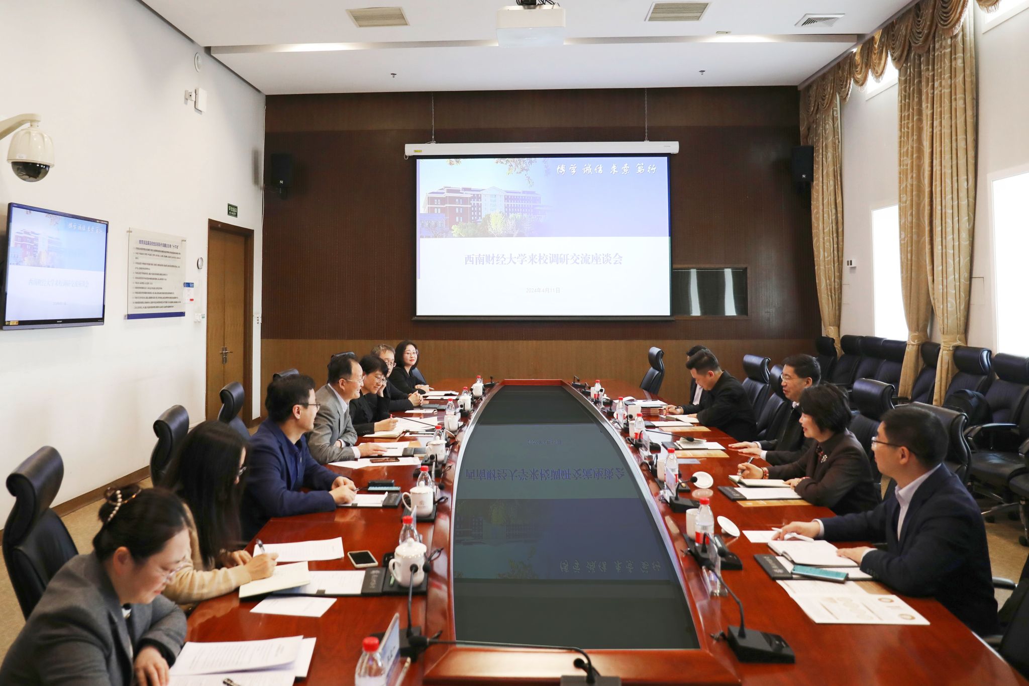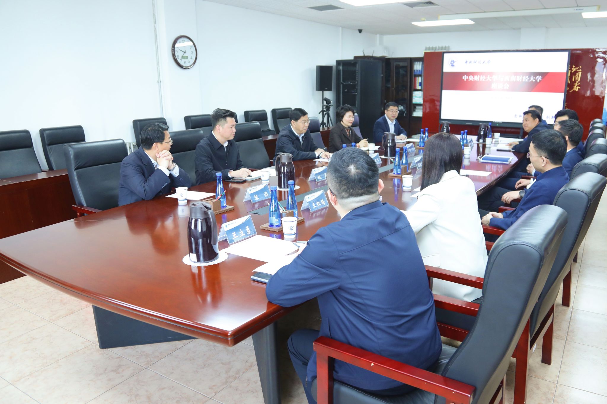 在中央财经大学交流时,马海涛从人才培养、学科建设、科学研究、师资队伍建设等方面介绍了中央财经大学近年来的发展情况。他表示,长期以来,两校保持良好的沟通联系,是亲密的合作伙伴,今后,期待双方在前期友好合作的基础上,立足两校“双一流”建设发展需求,进一步加强交流、深化合作,充分发挥财经类高校优势,共同开创财经类高校合作共赢新局面。赵建军详细介绍了我校在学科建设、人才队伍建设、立德树人等方面的基本情况。他表示,中央财经大学与西南财经大学有着相类似的学科背景,近年来,两校交往密切、沟通顺畅。今后,希望两校能进一步加强沟通交流,不断拓展工作思路、拓宽合作领域,互惠互利,共赢发展。