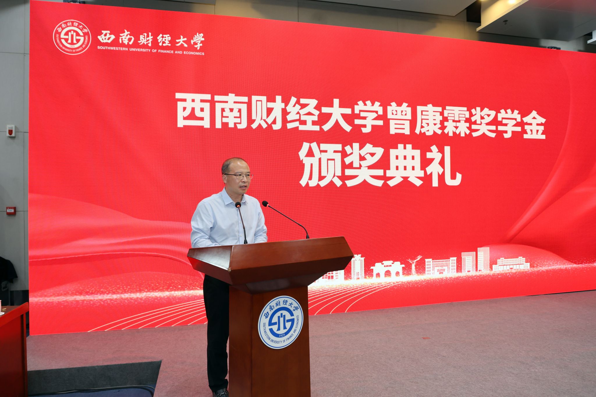 曾康霖在讲话时向获奖者表示热烈祝贺,对学校的关心和支持致以诚挚感谢。他分享了自己对习近平总书记系列重要讲话精神的学习领悟,阐述了对习近平总书记关于深入推进大中小学思想政治教育一体化建设重要指示的理解,对大学思政教育、思政课建设、教材建设、科学研究提出宝贵意见。他勉励同学们要秉持求实创新、怀疑批判、自由包容和平等合作的精神,在求实中创新、在创新中求真,以怀疑精神发现问题,以平等精神对待各专业、各行业,努力培养合作意识与能力,力争成为学习工作领域的“英雄”和“先锋”。