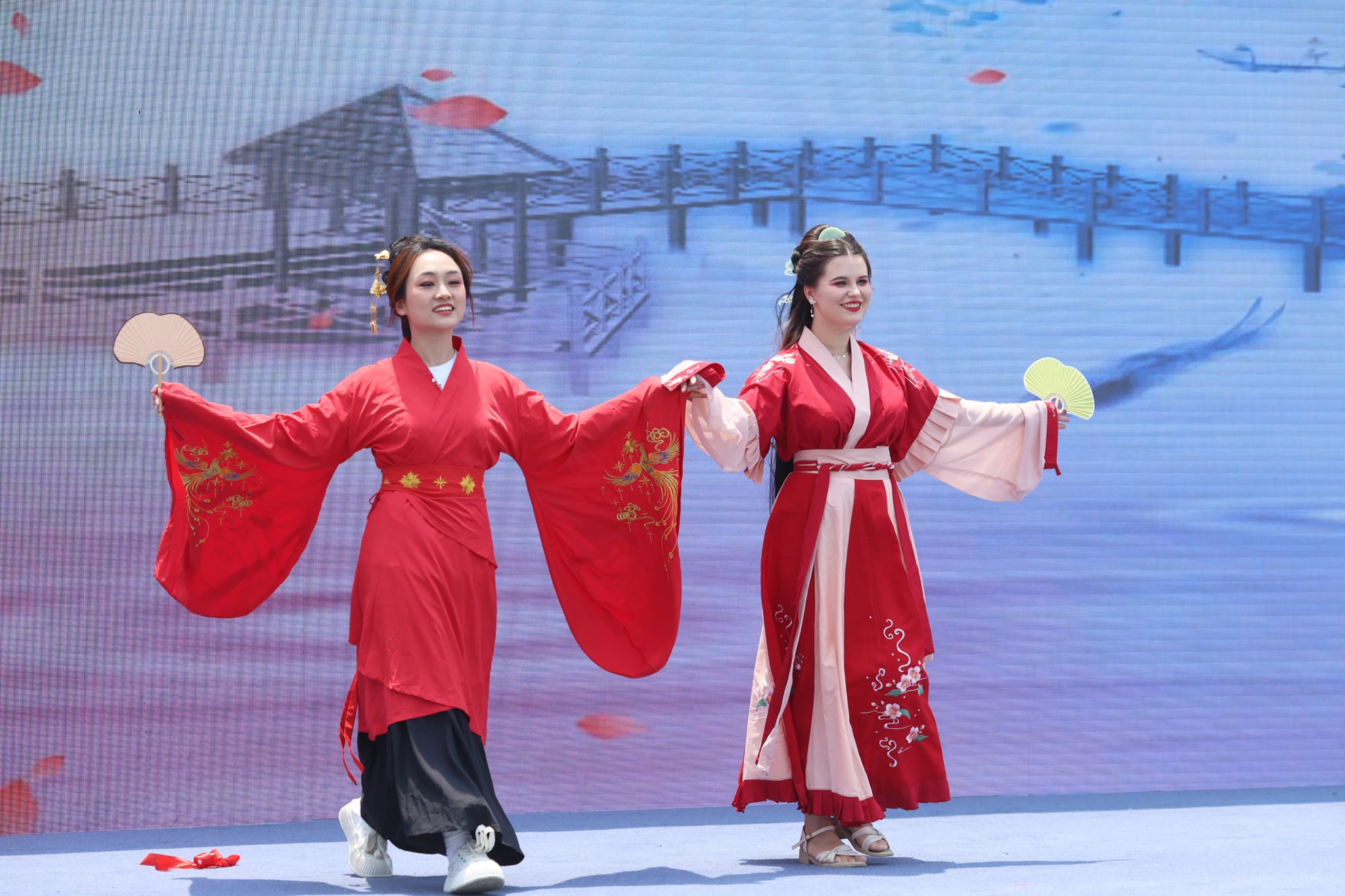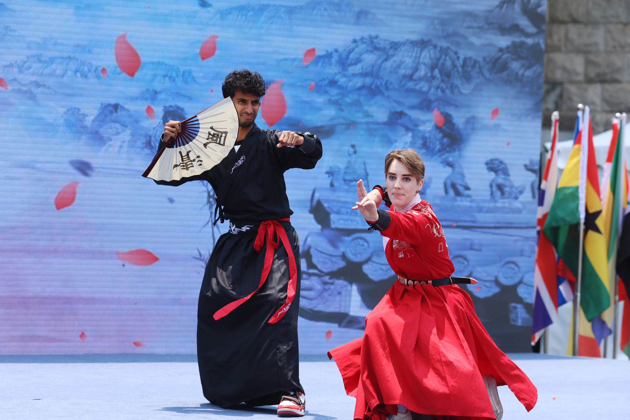 开幕式以富有中国传统文化色彩的舞狮表演拉开序幕,来自世界各地的同学们以中文歌、古典舞、汉服秀、八卦掌、器乐演奏等多种形式献上了一场精彩纷呈的文艺汇演。活动当天,现场45个精心布置的展台带领师生们感悟多元文化、纵览世界风情。文化节还设置了互动体验区,在非物质文化遗产展位,师生们可以亲手参与制作糖画、拓印、竹编等中国传统手工艺,体验中国传统文化独特魅力。