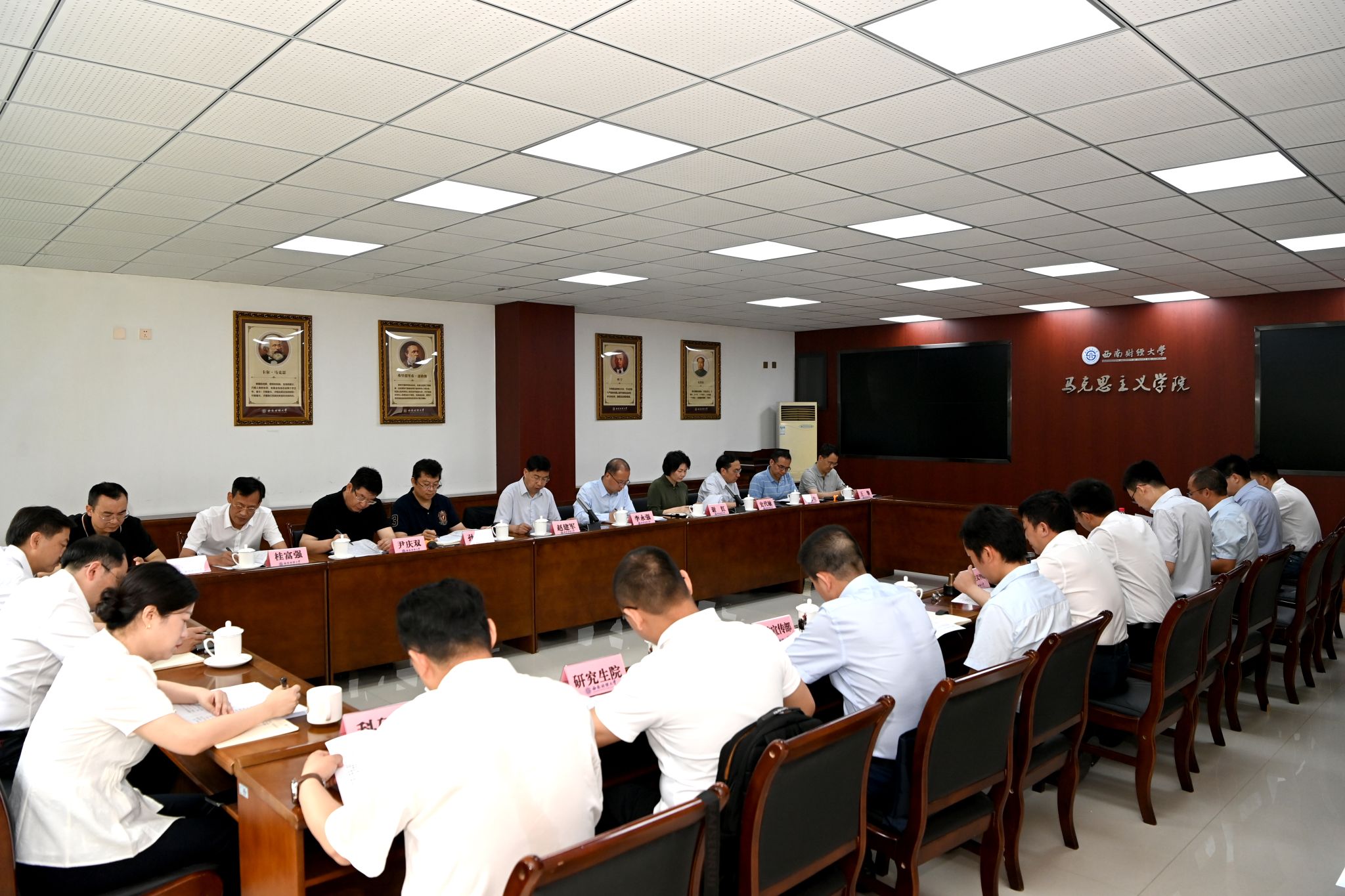 马克思主义学院汇报了学校思政课建设情况,党委办公室、组织人事部、党委宣传部、教务处、研究生院、发展规划处、科研处负责同志列席会议。