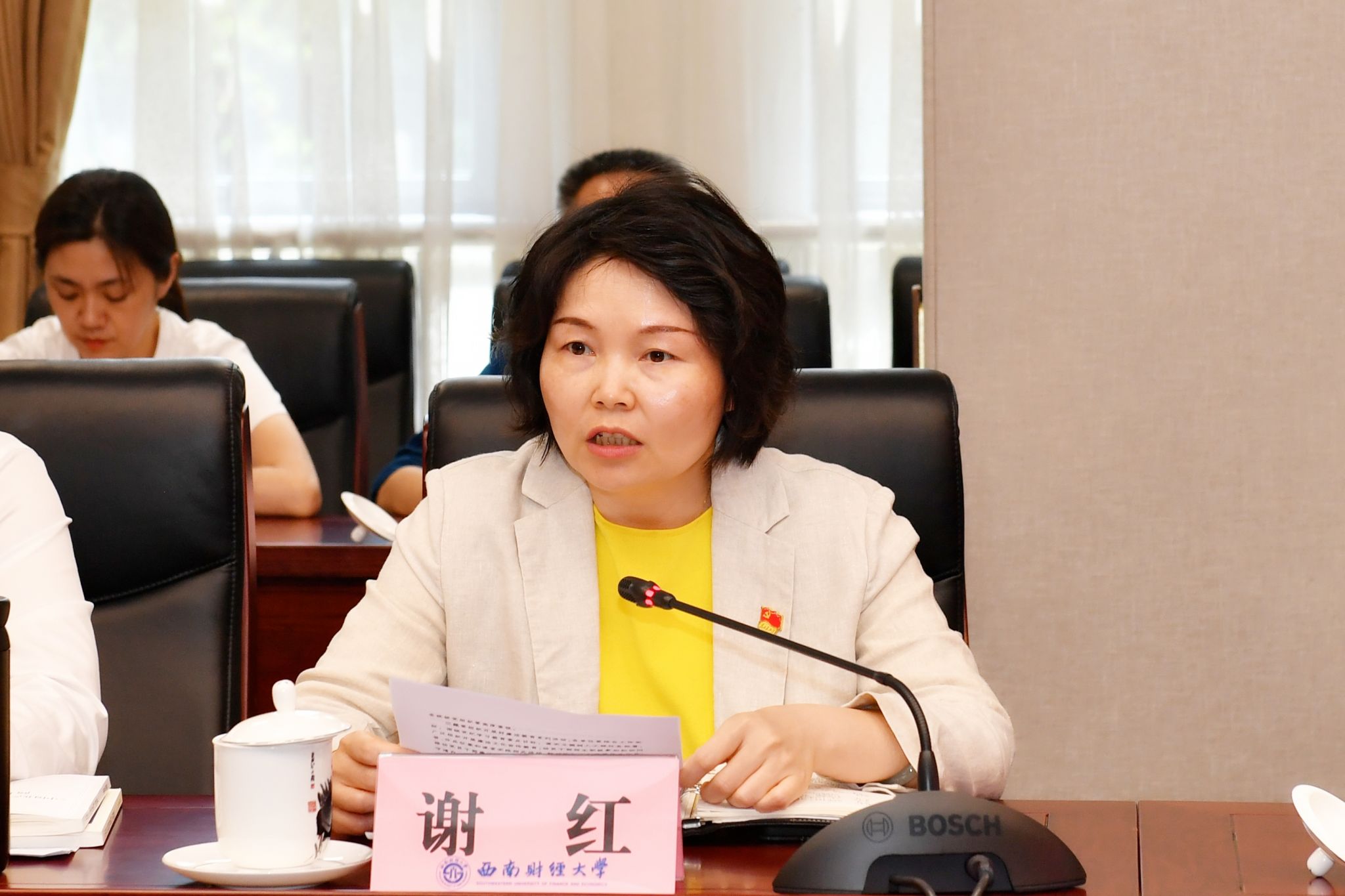 谢红指出,在全党范围内开展党纪学习教育,是以习近平同志为核心的党中央作出的重大决策部署,是今年党建工作的一项重要政治任务。各级党组织要坚持将党纪学习教育与日常工作紧密结合,扎实推动各项工作取得新成效。要高质量讲好纪律党课,做到课程目标更明确、讲授内容更聚焦、联系实际更紧密,精心做好准备,确保党课高质量。要加强对毕业生党员纪律教育,不断强化其政治意识、身份意识和廉洁意识,引导毕业生把纪律要求内化为自觉行动。要组织开展好廉洁教育系列活动,广泛开展廉洁文化宣传教育,不断引领塑造优良校风学风。要加强督促指导,充分发挥“特聘组织员”机制作用,建立与院级党组织的常态化联系,多形式多渠道做好督促指导。要加强学理化研究阐释,充分发挥学科优势,组织撰写研究阐释文章,着力推出一批高质量的研究成果,积极发出西财声音。