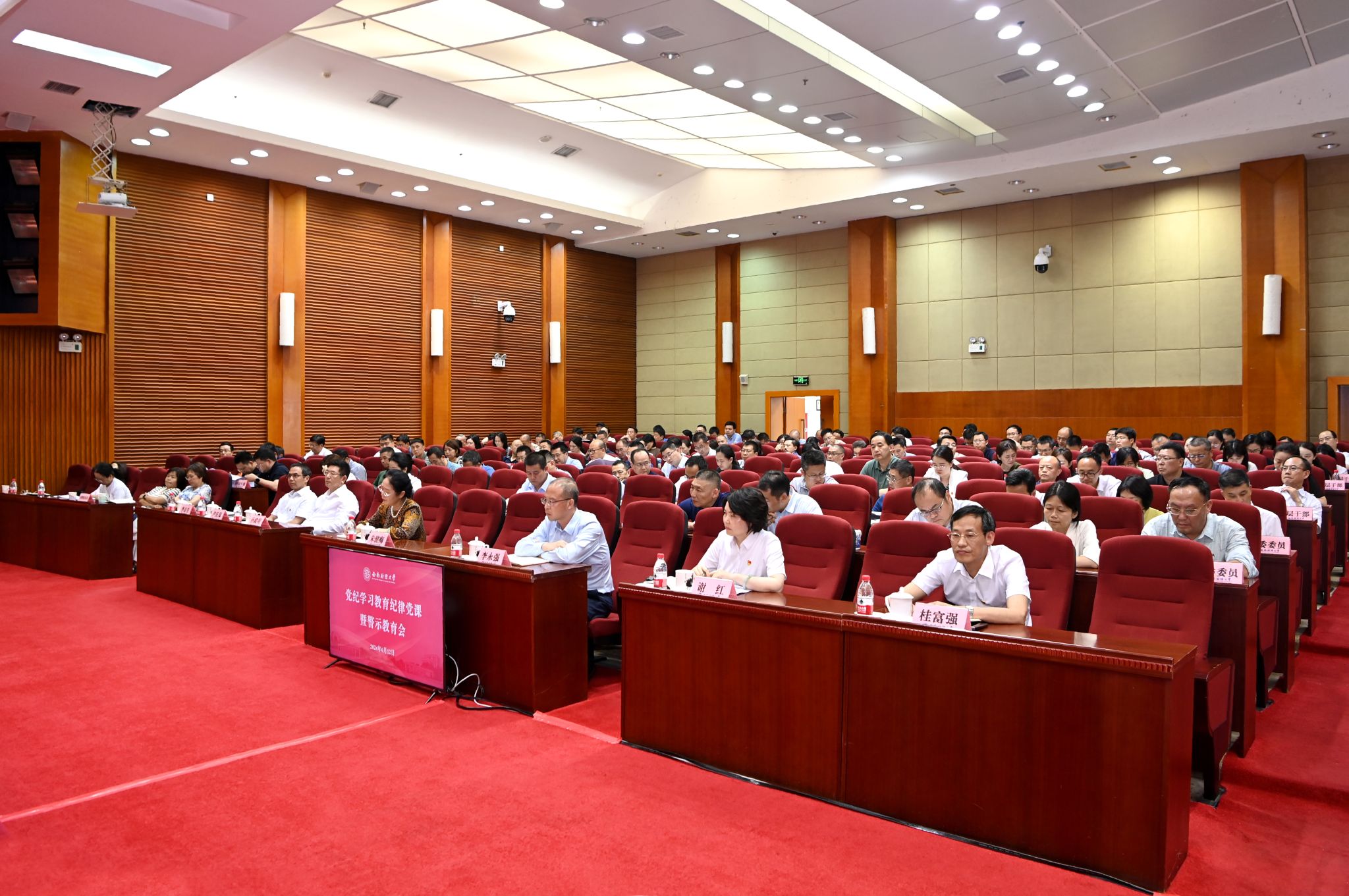 孙殿明主持会议并通报了高校系统典型违纪案例。他围绕深入学习习近平总书记关于全面加强党的纪律建设的重要论述、讲好纪律专题党课和切实抓好警示教育作出具体工作安排。