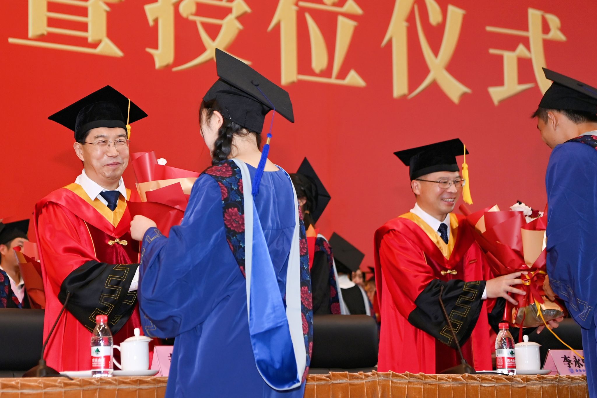 在即将挥别母校之际,毕业生代表们满怀敬意,向学校领导、嘉宾、教职工及管理服务人员代表献上鲜花,表达对母校和师长的感激与敬爱。