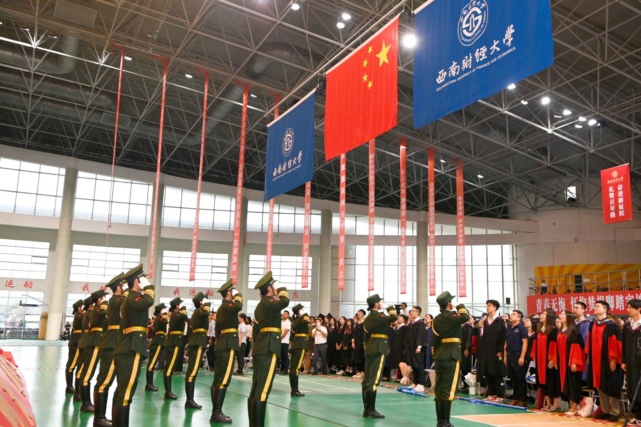 典礼在全体师生齐声高唱《西南财经大学校歌》中落下帷幕。