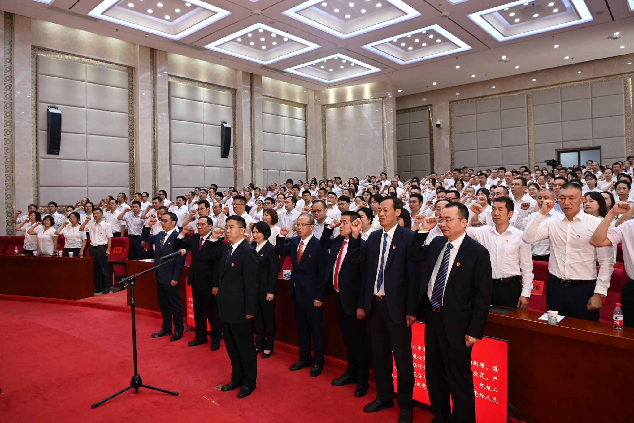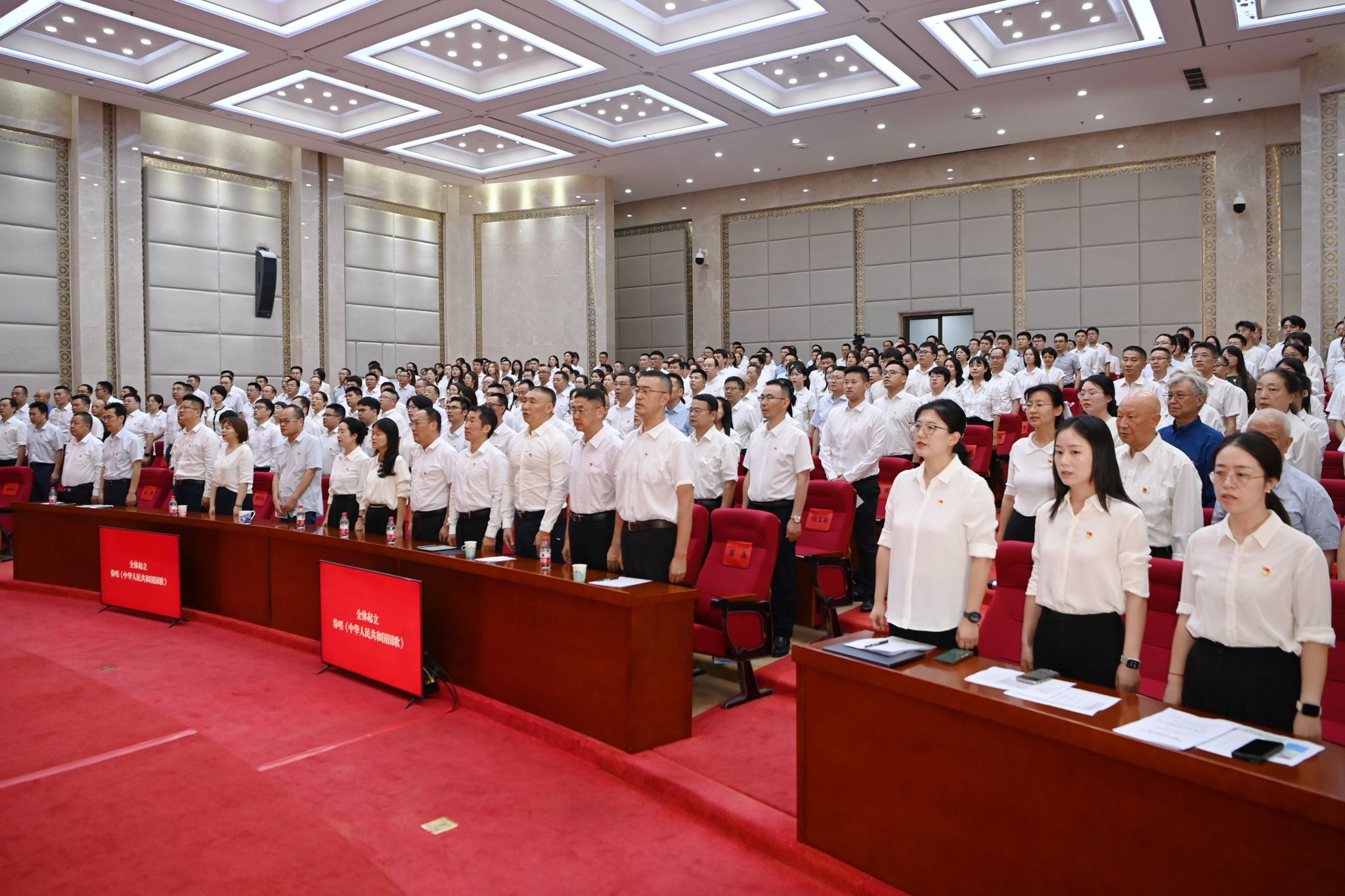赵建军带领全场新党员入党宣誓、老党员重温入党誓词,铿锵有力、掷地有声的誓言响彻会场,充分表达党员们为党和人民的事业奋斗终身的坚强决心。