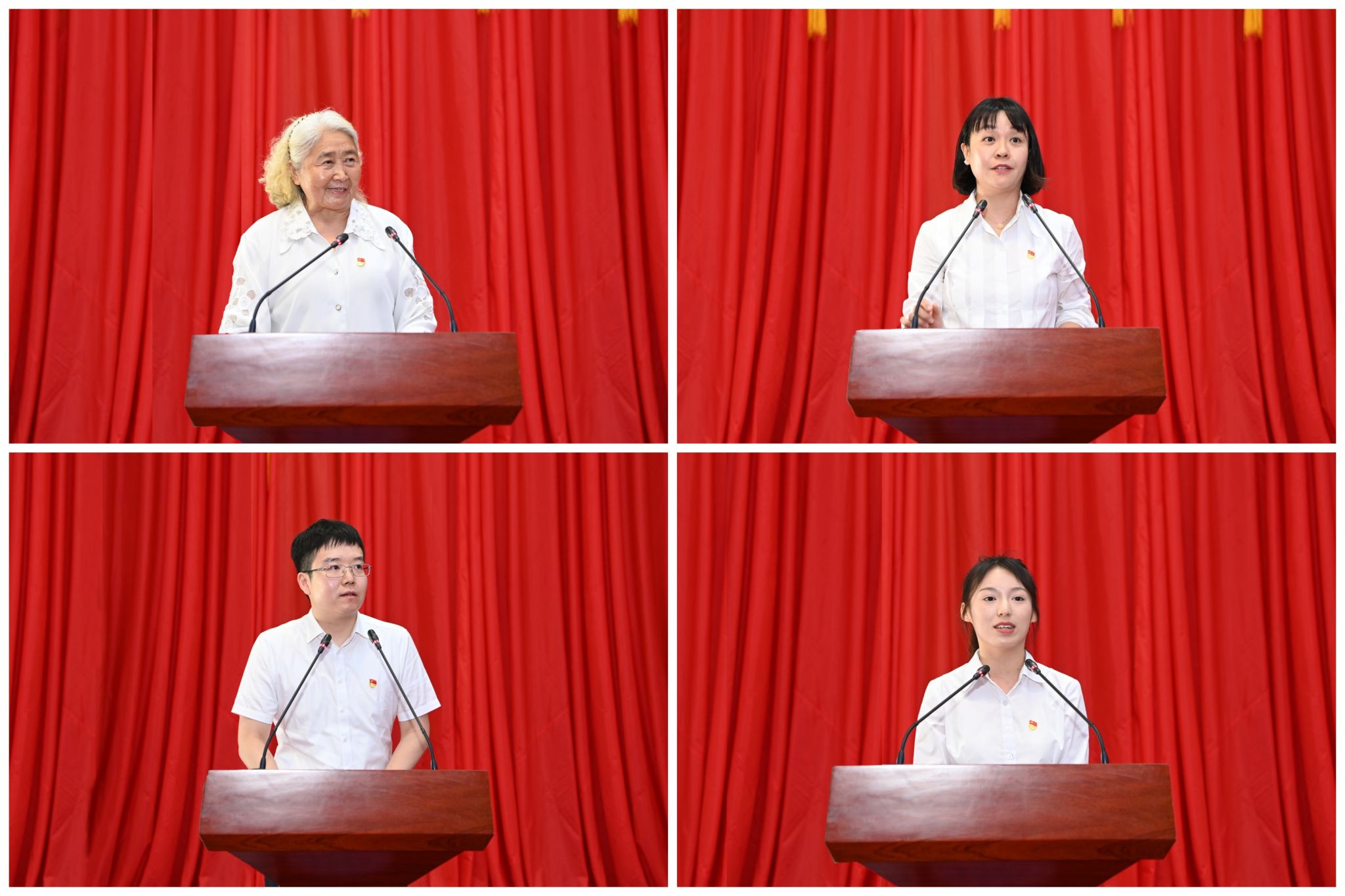 受表彰先进基层党组织代表兰敏汇报了一年来工作成绩和体会,表示将以更饱满热情、更务实作风、更有力措施推动学院事业发展再上新台阶。受表彰先进个人代表文书洋表示将继续坚持“为党育人、为国育才”初心使命,树立“躬耕教坛、强国有我”的志向抱负,为办好人民满意的教育、建设教育强国贡献力量。“党建工作品牌”“优秀支部工作法”创建单位代表周敏介绍了推动党建与事业发展深度融合有效做法,表示将强化优势特色,服务国家战略,为加快推进数字经济赋能中国式现代化贡献力量。新党员代表岳之杨表示将坚定不移听党话、跟党走,争做有理想、敢担当、能吃苦、肯奋斗的新时代好青年,在迈向西财新百年征程中,续写更加昂扬的青春华章。