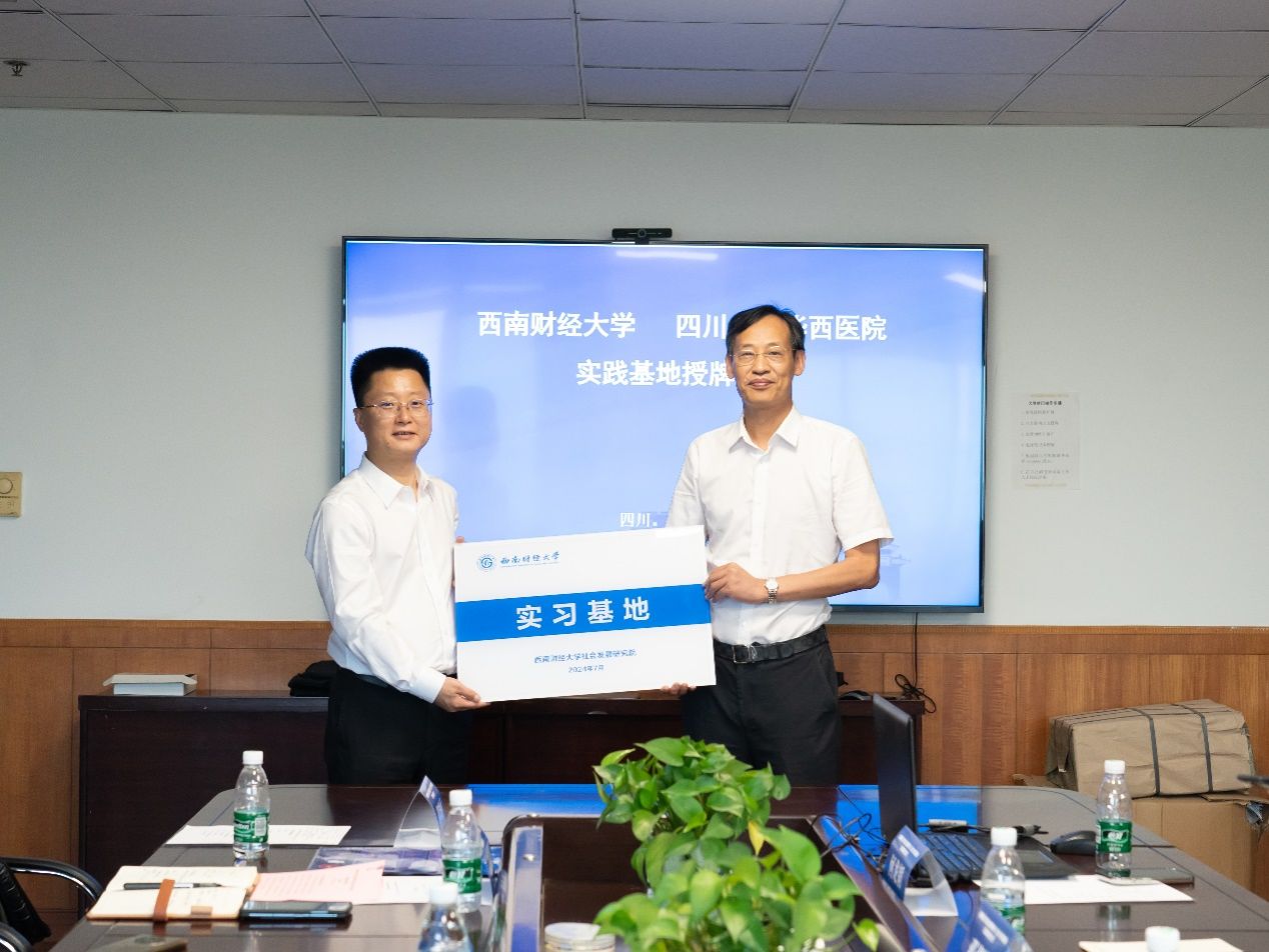 社会发展研究院相关负责人介绍了双方下一步合作方向及内容。随后,双方进行实习基地签约仪式,桂富强向四川大学华西医院授牌。