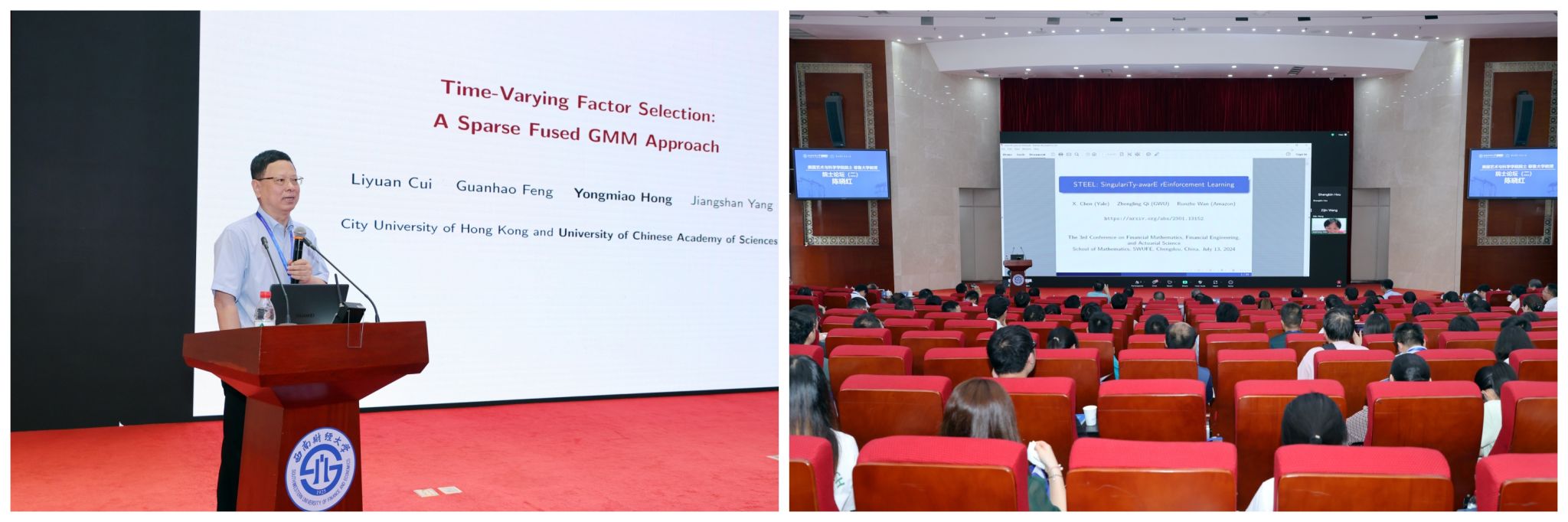 中会报告按照学科分为金融数学、金融工程、金融科技、保险精算四个板块,山东大学冯新伟教授和胡尚明教授、上海交通大学林一青副教授、复旦大学张霜剑研究员、华南师范大学杨舟教授、滑铁卢大学李玉英教授等26位专家聚焦当下前沿问题,分享最新科研报告,共同探讨学科研究领域未来发展方向。