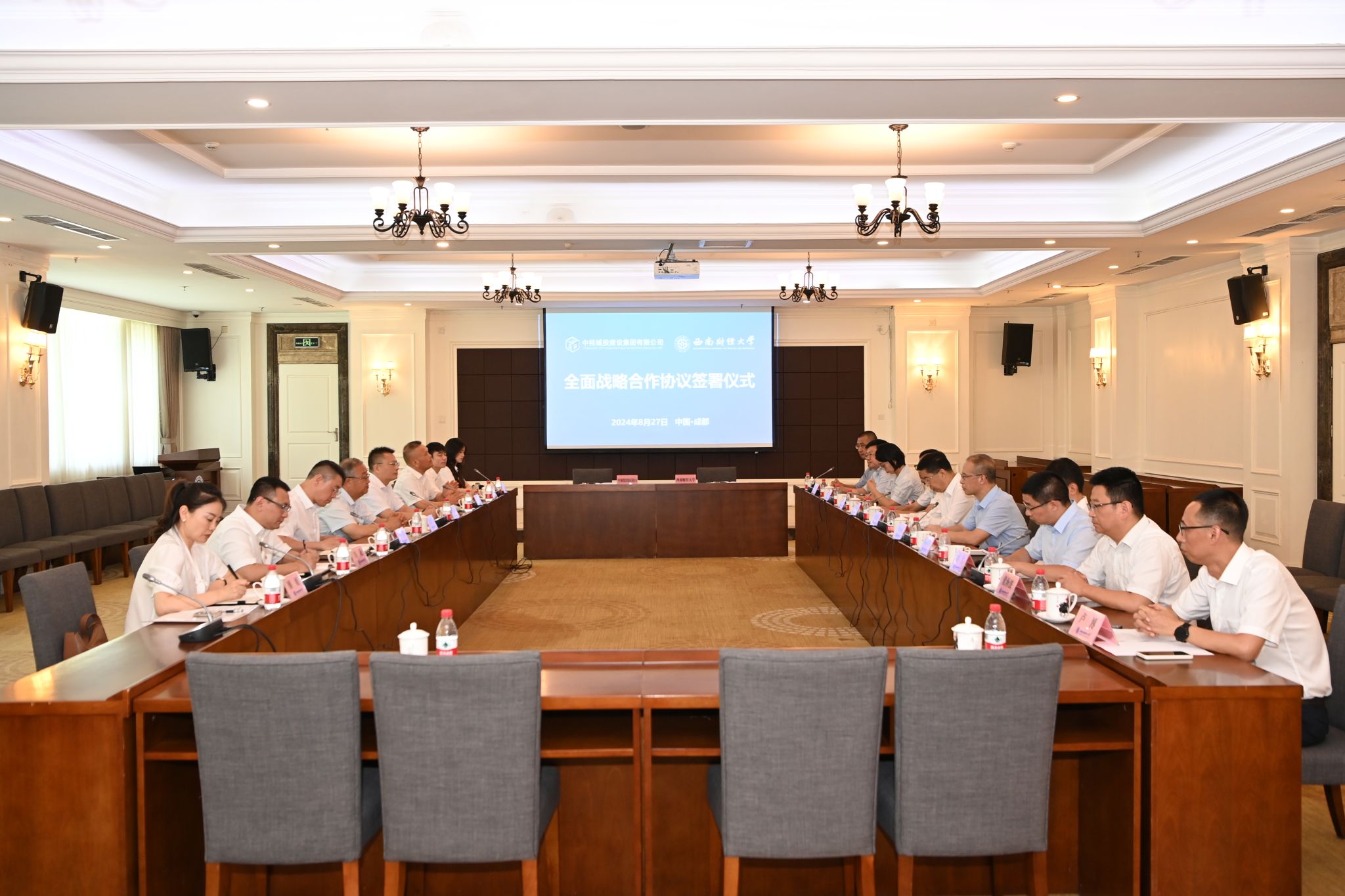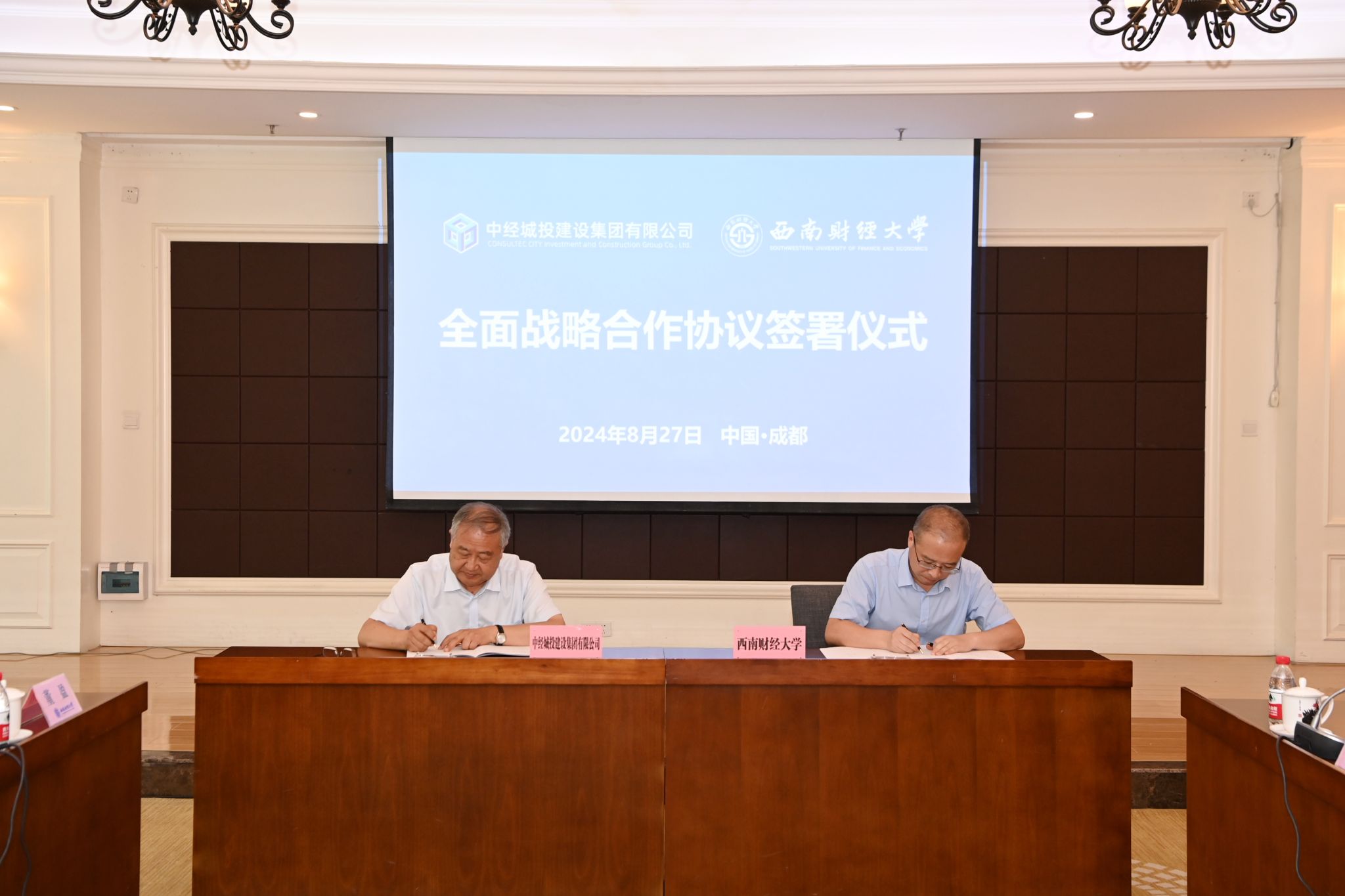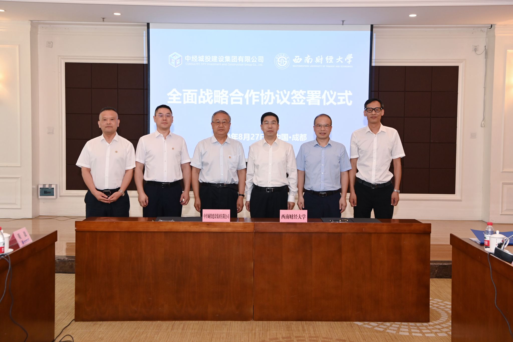 8月27日,学校与中经城投建设集团有限公司全面战略合作协议签署仪式在光华校区举行。学校党委书记赵建军,党委副书记、校长李永强,党委常委、副校长桂富强;中经城投建设集团有限公司董事长娄德兰、总裁助理李超,中经城投建设集团四川有限公司董事长陈川、总经理周继武出席仪式。