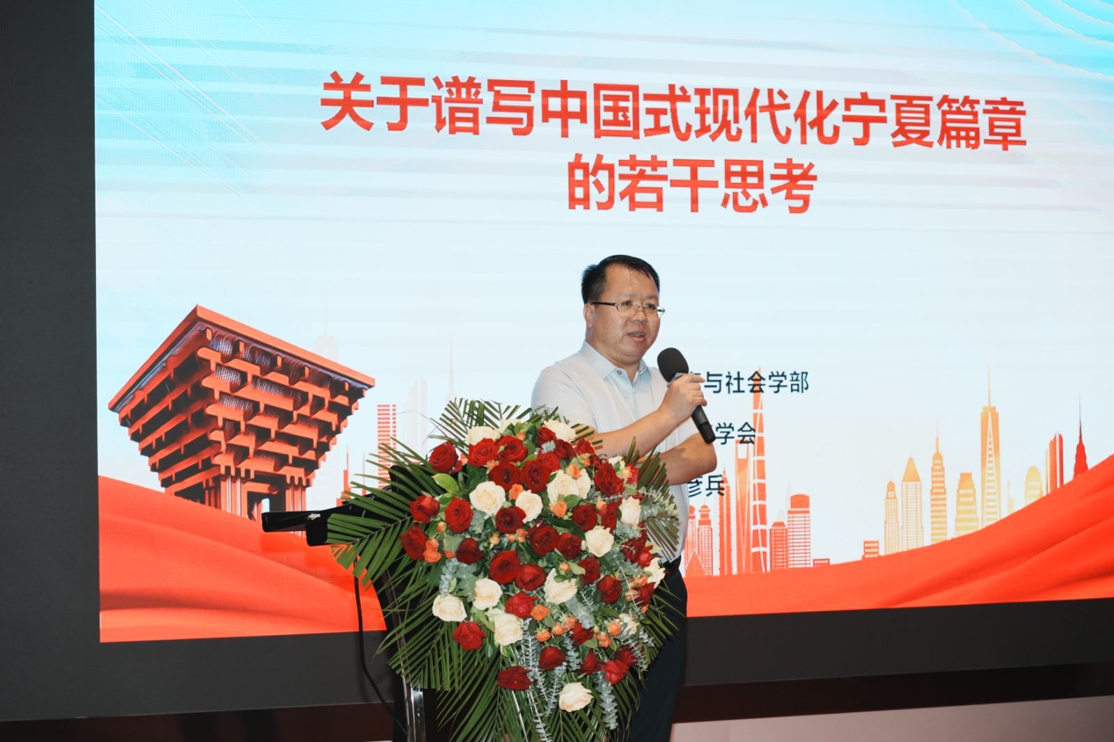 会后,学校校友、宁夏大学教育与社会学部党委副书记、副部长房彦兵以《关于谱写中国式现代化宁夏篇章的若干思考》为题进行了主题分享。