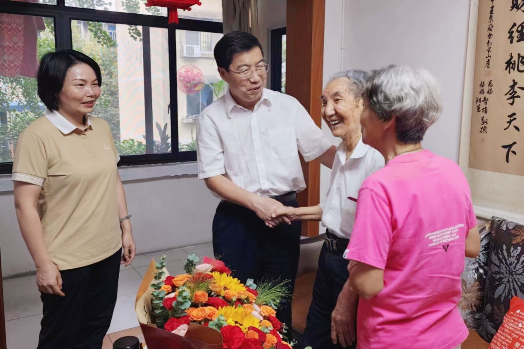 9月28日,在喜迎中华人民共和国成立75周年之际,学校党委开展走访慰问活动,党委书记赵建军、党委副书记谢红带队,进门入户为新中国成立前参加革命工作的老干部、老党员送上组织的关怀和温暖。