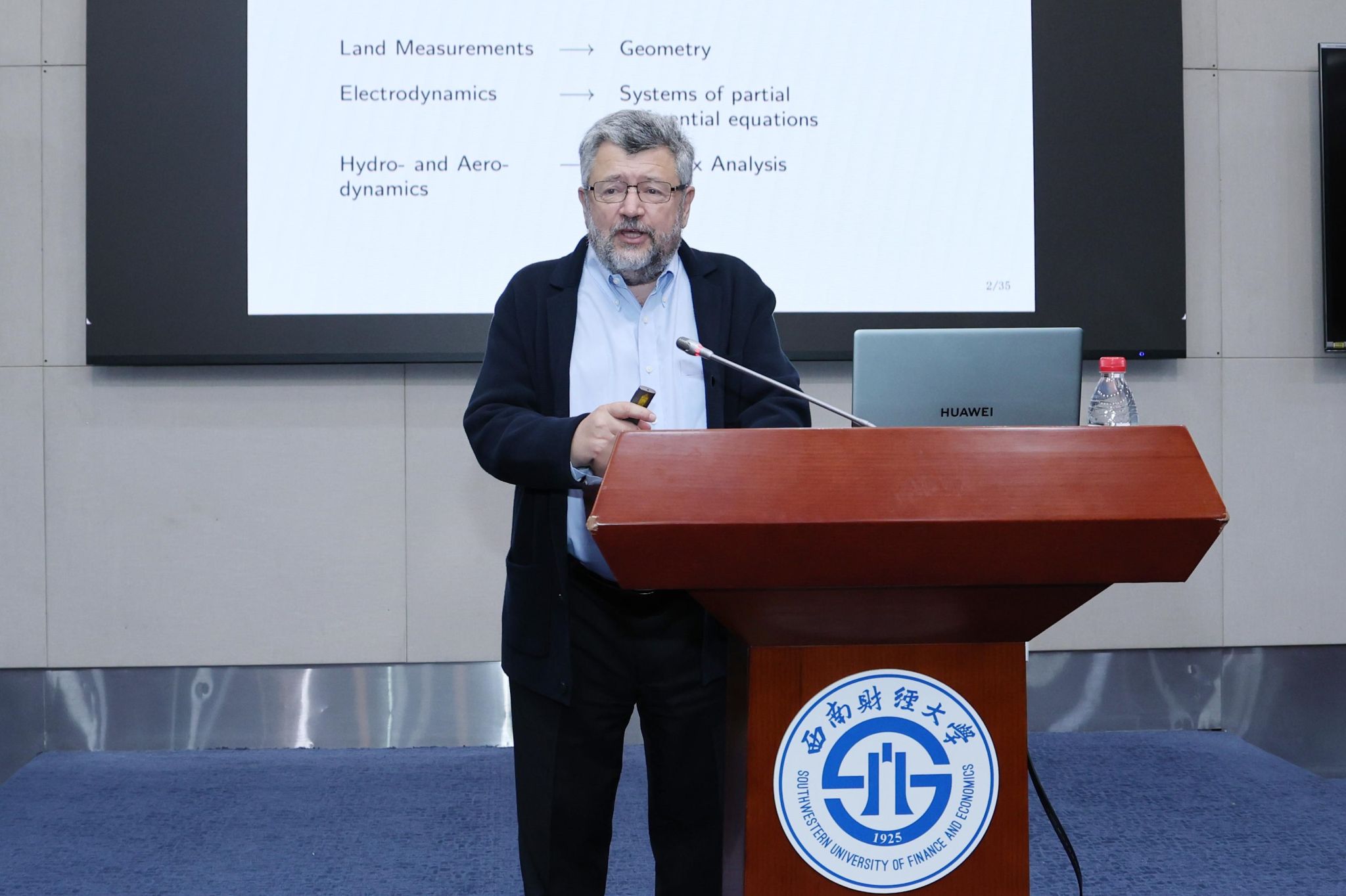 马永强对杰曼诺夫教授表示热烈欢迎,并介绍了学校发展历史与基本情况。他表示,数学学科是助力学校全面推进“新财经”战略升级的有力支撑,是学校“理工攀登”与“新兴交叉”学科建设计划的重要基石,也是服务于“新财经”人才培养和交叉学科创新的重要保障,希望杰曼诺夫教授对学校数学学科、数学学院的发展给予更多指导和支持。