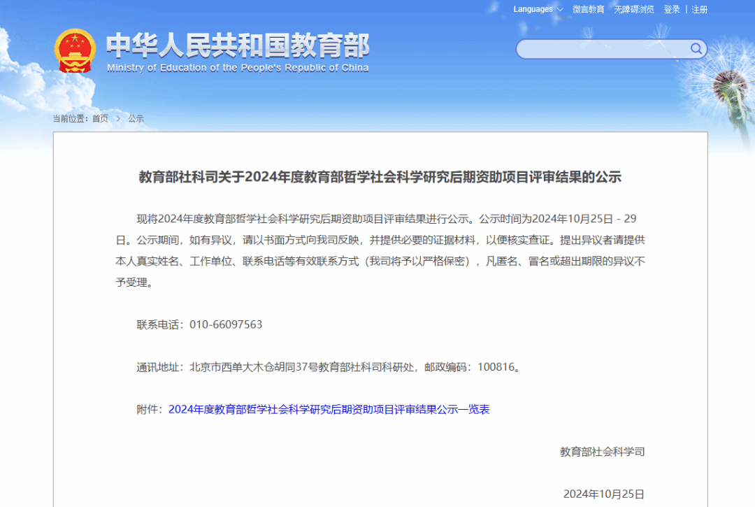 学校2024年教育部哲学社会科学研究后期资助项目立项数并列全国第一