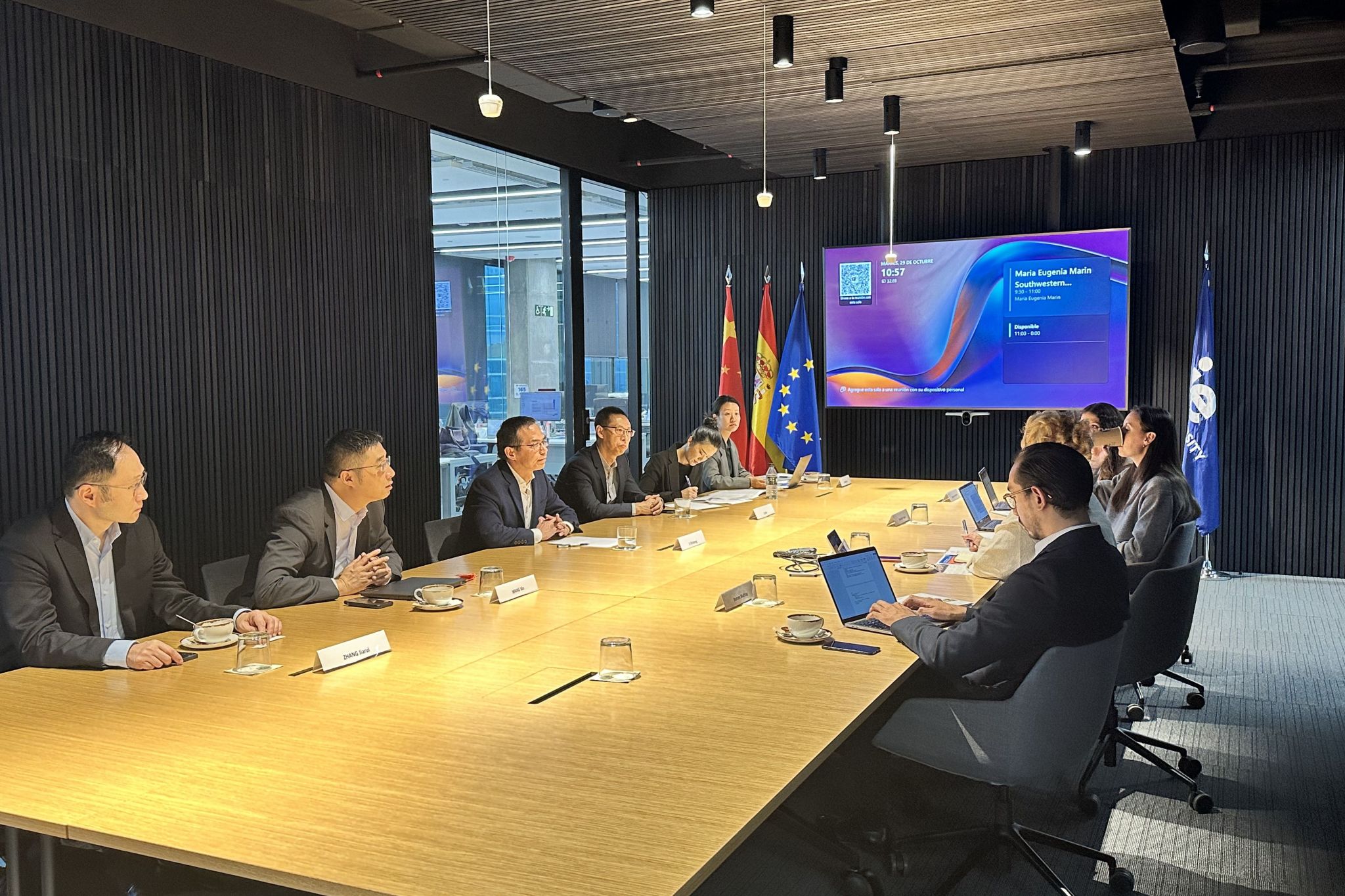 李志生一行与西班牙康普顿斯大学语言中心、国际事务等相关负责人举行座谈。双方就西班牙语学生交换、签署校院两级合作协议等事项进行探讨并达成一致。