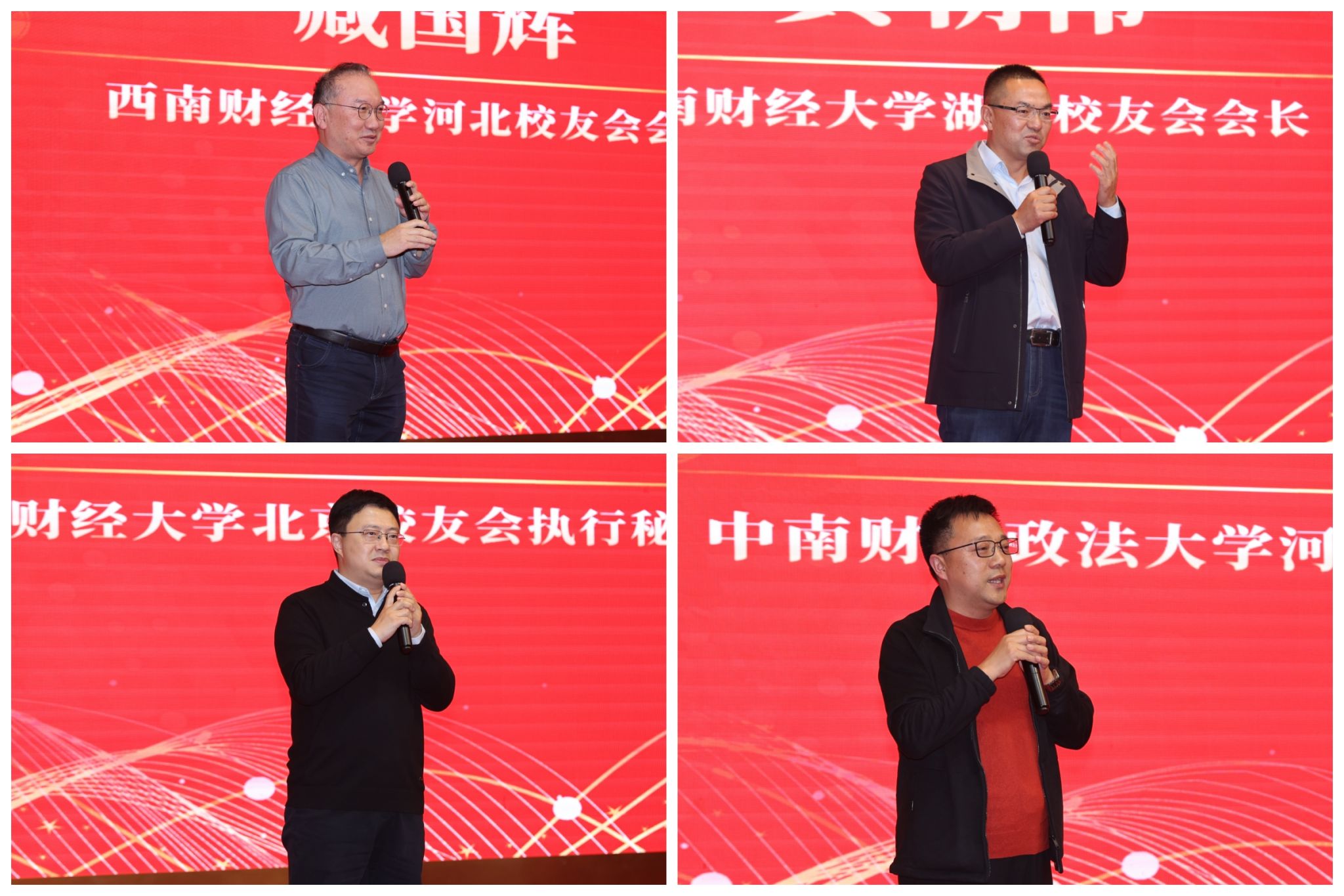 学校河北校友会会长臧国辉、湖北校友会会长黄朝伟、北京校友会执行秘书长李东夏,中南财经政法大学河南校友会秘书长吴东明分别发表了热情洋溢的讲话,表达了对西财河南校友会未来发展的坚定信心和美好期待。