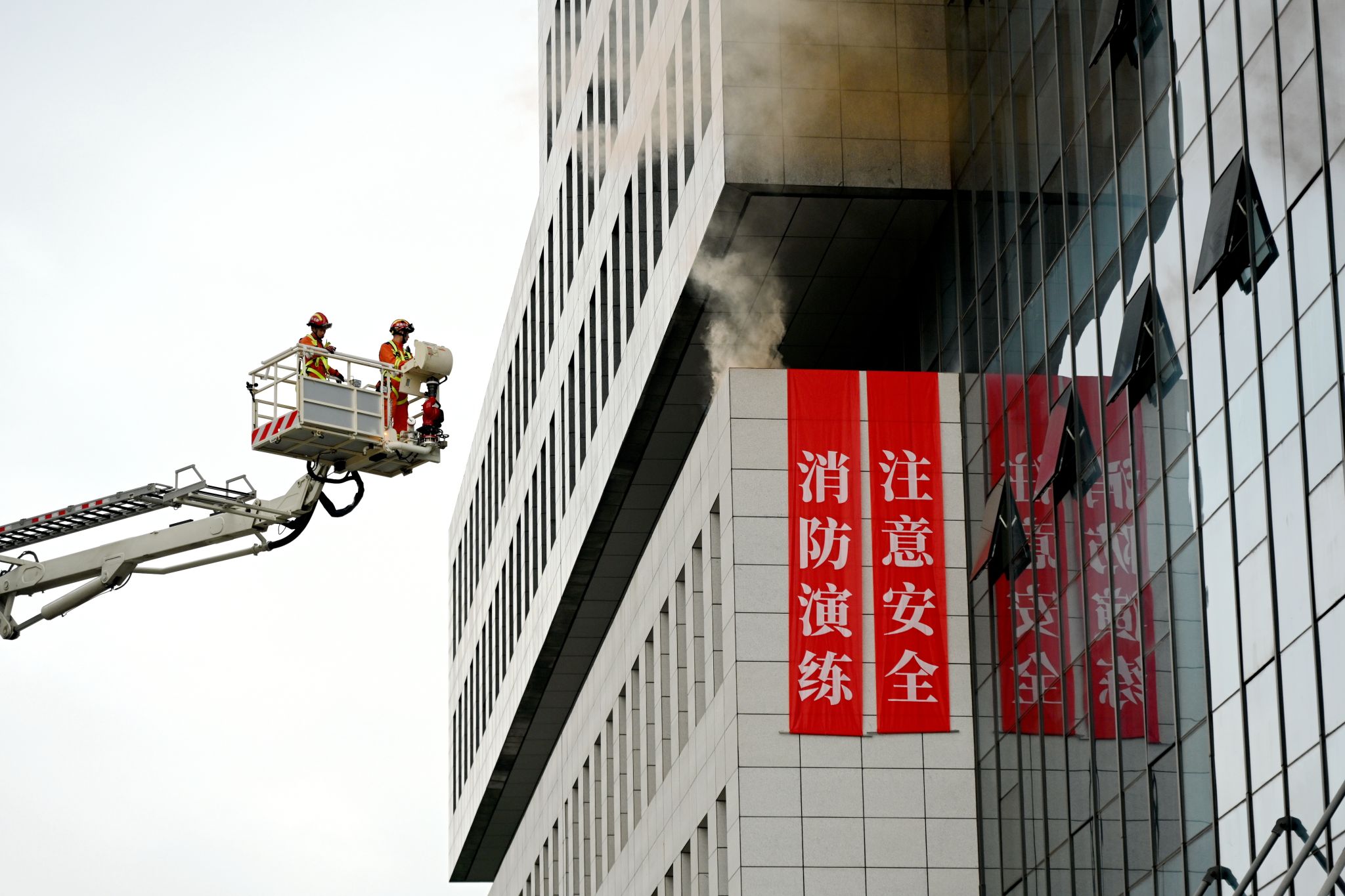 签约仪式结束后,我校与温江区消防救援大队共同开展了2024年消防应急疏散演练。