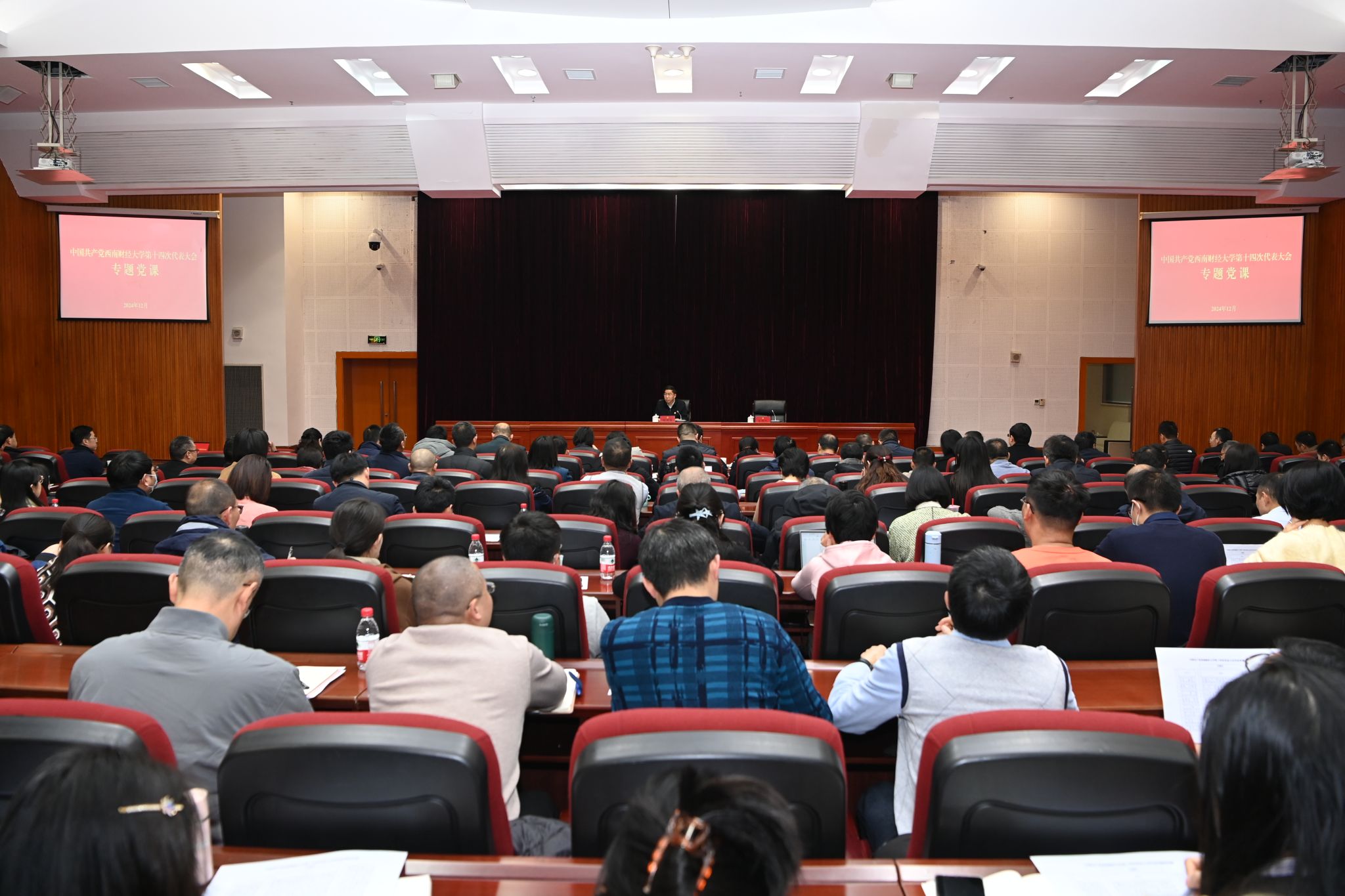 12月11日,党委书记赵建军为参加中国共产党西南财经大学第十四次代表大会的244名代表讲授专题党课,强调要深入学习贯彻习近平总书记在党的二十届三中全会和全国教育大会上的重要讲话精神,深刻认识学校第十四次党代会的重大意义和主要任务,明晰党代表的职责权利和任务要求,深化理论武装、统一思想认识、提升履职能力、强化责任担当,以饱满的政治热情和昂扬的精神状态参加大会,为学校第十四次党代会胜利召开打牢思想基础、提供坚强保障。