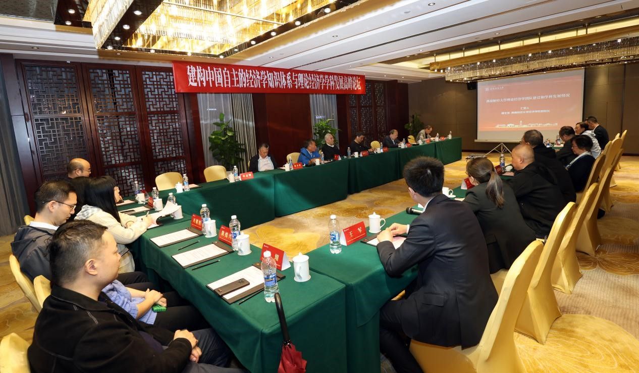 10月24日,西南财经大学“建构中国自主的经济学知识体系与理论经济学学科发展高峰论坛”在四川成都顺利召开。南京大学原党委书记洪银兴教授、中央民族大学原校长黄泰岩教授、武汉大学简新华教授、辽宁大学林木西教授、上海财经大学赵晓雷教授、中国投资有限责任公司原副总经理谢平等知名专家学者应邀参加研讨会。西南财经大学学术委员会主任刘灿、马克思主义经济学研究院院长丁任重、中国金融研究院名誉院长刘锡良、科研处处长陈滔、副处长胡俊超、马克思主义经济学研究院副院长李萍、经济学院党委书记兰敏、副院长邹红、副院长韩文龙,以及经济学院、全国中国特色社会主义政治经济学研究中心研究人员出席研讨会。
